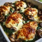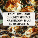 This 30-Minute Easy Low-Carb Chicken Spinach Mushroom Bake is a delicious and healthy dish featuring tender chicken breasts, sautéed mushrooms, and fresh spinach, all topped with melted mozzarella cheese. Perfect for a quick weeknight dinner, it combines simple ingredients with an easy cooking process to deliver a flavorful, low-carb meal.
