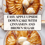 Keywords: Apple Upside Down Cake, fall dessert, caramelized apples, homemade cake, cinnamon cake, easy desserts