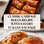 Keywords: cabbage rolls, stuffed cabbage, Italian sausage, ground beef, tomato sauce, comfort food, baked cabbage rolls, traditional recipe