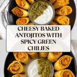 Antojitos are delightful rolled flour tortillas filled with a creamy, cheesy mixture spiced with green chilies and paprika, baked until golden and crispy. These bite-sized Mexican-inspired snacks are perfect for parties or casual gatherings, served with a flavorful basil pesto sour cream dip.