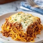 Keywords: baked spaghetti casserole, cream cheese pasta bake, cheesy spaghetti casserole, comfort food pasta, baked pasta recipe
