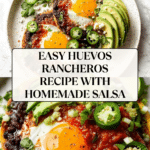 Keywords: Huevos Rancheros, Mexican breakfast, huevos rancheros recipe, black beans, corn tortillas, homemade salsa, breakfast eggs, traditional Mexican food