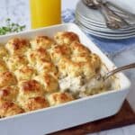 If you don’t have refrigerator biscuits, you can use homemade biscuit dough, pre-made biscuit dough from the freezer, or even drop biscuit recipes from scratch. Just cut the dough into pieces before baking over the gravy layer.