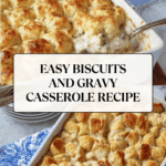 Biscuits and gravy casserole is a comforting, hearty breakfast perfect for feeding a crowd. This layered dish combines savory sausage gravy with fluffy biscuit pieces baked to golden perfection. It’s an easy twist on a classic Southern favorite that tastes just like the original skillet version.