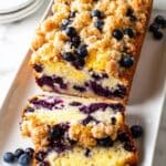 Keywords: blueberry lemon loaf, lemon blueberry cake, blueberry cake, lemon loaf, crumb topping, lemon glaze