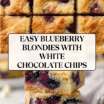 Keywords: Blueberry blondies, white chocolate blondies, blueberry dessert, baked blondies, easy blondies recipe, fruity blondies