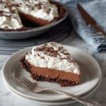 Keywords: brownie bottom pie, chocolate pudding pie, layered chocolate dessert, chocolate pie with whipped cream