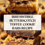 Butterscotch Toffee Cookie Bars combine rich, melted butter and brown sugar with buttery toffee bits and sweet butterscotch chips. Baked to golden perfection in a 9×13 pan, these chewy bars offer a perfect balance of crisp edges and soft centers, making a decadent treat for any occasion.