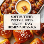 These Buttery Soft Pretzel Bites are a delicious, chewy treat perfect for snacking or serving as a party appetizer. Made with a simple yeast dough, boiled briefly in baking soda water, and baked to golden perfection, these bite-sized pretzels are brushed with butter and sprinkled with coarse salt for the authentic soft pretzel taste.