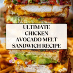 A delicious and comforting Chicken Avocado Melt Sandwich featuring juicy pan-seared chicken breasts, creamy avocado, melted cheese, and fresh vegetables all grilled to golden perfection on your choice of bread. This sandwich balances protein, healthy fats, and fresh flavors for a satisfying meal.