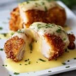 Chicken Cordon Bleu with Swiss Cheese Sauce is a classic dish that combines tender chicken, savory turkey, and creamy cheese in a crispy coating. This homemade version is perfect for a comforting dinner that feels both elegant and satisfying.