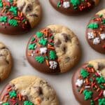 These classic Chocolate Chip Cookies are tender, chewy, and loaded with mini semi-sweet chocolate chips. Perfectly balanced with the right blend of sugars and a hint of cornstarch for softness, these homemade cookies are finished with a delightful dip in melted chocolate and festive Christmas sprinkles. Ideal for holiday baking or any time you crave a timeless sweet treat.