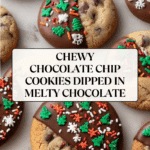 These chocolate chip cookies are tender, chewy, and packed with melty chocolate chips. Finished with a festive dip in melted chocolate and sprinkles, they’re perfect for holiday treats or any time you crave a comforting classic with a twist.