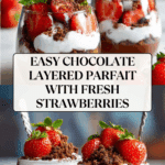 Keywords: chocolate dessert, layered parfait, quick dessert, strawberry parfait, Greek yogurt dessert