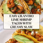 Keywords: cilantro lime shrimp tacos, shrimp tacos, creamy slaw tacos, quick shrimp dinner, Mexican shrimp recipe