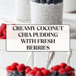 This Coconut Chia Pudding is a creamy, dairy-free dessert or breakfast option made with full-fat coconut milk, chia seeds, and natural sweeteners. Infused with vanilla and cinnamon, it’s a healthy and refreshing dish topped with fresh berries and toasted coconut flakes, perfect for a nutritious start to your day or a light, satisfying treat.