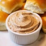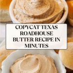 This Copy Cat Texas Roadhouse Butter recipe delivers the exact sweet and creamy flavored butter spread served at the famous steakhouse. Perfect for spreading on warm bread, this easy-to-make compound butter blends creamy unsalted butter, powdered sugar, honey, and cinnamon to create a delightfully sweet and rich spread that enhances any bread or roll.