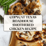 Keywords: Texas Roadhouse, Smothered Chicken, Copycat Recipe, Monterey Jack Cheese, Sautéed Mushrooms, Caramelized Onions, Easy Dinner, Oven Baked Chicken