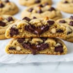 Cowboy Cookies are a hearty, crunchy, and chewy treat packed with oats, corn flakes, pecans, and plenty of chocolate and peanut butter chips. These cookies are delightful for anyone who loves a mix of textures and rich flavors in one bite.