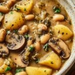 This Cozy White Bean Mushroom Stew is a hearty, comforting dish featuring tender mushrooms, creamy white beans, and baby potatoes simmered in a flavorful vegetable broth enriched with dairy-free milk. Perfect for a vegan-friendly and filling meal on chilly days, it balances savory herbs and aromatic garlic to create a rustic stew that’s both nutritious and satisfying.