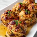 Delicious and festive Cranberry & Turkey Stuffing Balls, combining shredded turkey, dried cranberries, and savory herbs baked to golden perfection. These bite-sized stuffing balls make for a perfect holiday side or appetizer that’s easy to prepare and full of flavor.