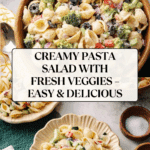 Keywords: creamy pasta salad, pasta salad with vegetables, picnic salad, easy pasta salad, broccoli pasta salad, mayonnaise dressing pasta