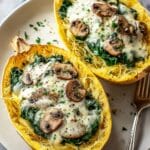 This creamy spinach and mushroom stuffed spaghetti squash is a delicious, comforting dish that feels indulgent yet stays light. Roasted spaghetti squash strands are combined with a rich, cheesy filling, making it a perfect vegetarian main or side. It’s easy to prepare and impressive enough for guests.