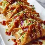- Garnish and Serve: Sprinkle each taco with sesame seeds and chopped cilantro for added flavor and visual appeal. Serve immediately while the wontons are crisp.