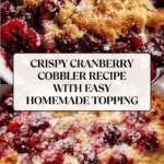 This Crispy Cranberry Cobbler is a delightful dessert featuring tart cranberries with a crisp, golden topping. Perfect for holiday gatherings or cozy nights, this cobbler combines fresh or frozen cranberries with a sweet, buttery crust and optional vanilla ice cream or whipped cream for serving.