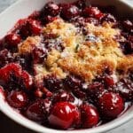 This Crispy Cranberry Cobbler is a delightful dessert featuring tart cranberries with a crisp, golden topping. Perfect for holiday gatherings or cozy nights, this cobbler combines fresh or frozen cranberries with a sweet, buttery crust and optional vanilla ice cream or whipped cream for serving.