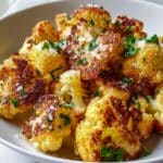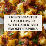 This Crispy Roasted Cauliflower recipe features perfectly roasted cauliflower florets with a flavorful blend of garlic powder, smoked paprika, and a touch of Parmesan cheese for added richness. Roasting at high heat creates a golden, crispy texture that’s ideal as a healthy side dish or snack, garnished with fresh parsley for a bright finish.