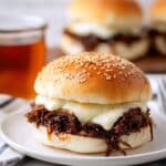 Store leftover shredded beef and broth in an airtight container in the refrigerator for up to 3 days. Reheat gently on the stove or in the microwave, adding extra broth if needed to keep the meat moist. Keep the rolls and cheese separate until ready to serve.