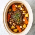 PrintCrockpot Pot Roast with Vegetables and Mushroom Gravy Recipe