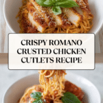 This Crusted Chicken Romano recipe features tender chicken cutlets coated in a flavorful crust of panko breadcrumbs, shredded Romano cheese, and Italian seasonings. Pan-fried to a golden brown perfection, this dish offers a crispy exterior while remaining juicy inside, making it a delicious and satisfying meal for any occasion.