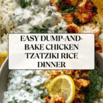 This Dump-and-Bake Chicken Tzatziki Rice is an easy, flavorful one-dish meal perfect for busy weeknights. Tender chicken bakes alongside fragrant rice, topped with a refreshing homemade tzatziki sauce that adds a bright, creamy touch.