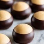 Store buckeyes in an airtight container in the refrigerator for up to two weeks. They can also be frozen for longer storage; just thaw in the refrigerator before serving. Since chocolate can soften at room temperature, keeping them chilled helps maintain their shape and texture.
