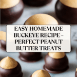 This Easy Buckeye Recipe combines creamy peanut butter and rich chocolate to create classic bite-sized treats resembling Ohio’s famous buckeye nuts. Smooth peanut butter balls are dipped in melted chocolate and chilled until firm, making for a perfect combination of sweet and salty flavors in every bite.