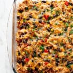 Keywords: chicken casserole, burrito casserole, fajita chicken casserole, easy casserole recipe, baked chicken and rice, Mexican casserole, healthy chicken dinner
