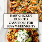 This easy chicken burrito casserole is a comforting, flavorful one-dish meal perfect for busy weeknights. Packed with seasoned rice, tender shredded chicken, beans, and melted cheese, it combines classic Mexican-inspired flavors without any fuss. Simply bake and enjoy a warm, satisfying dinner.