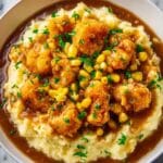Easy Chicken Mashed Potato Bowls are a comforting and quick meal perfect for busy weeknights. Creamy mashed potatoes form the base, topped with crispy chicken nuggets, warm corn, and shredded Colby-Jack cheese, all drizzled with savory chicken gravy. This simple, hearty bowl combines classic flavors in one satisfying dish that’s ready in minutes.