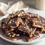 - Add Toppings and Chill: Sprinkle chopped peanuts evenly over the chocolate, then add flaky sea salt to taste. Place the baking sheet in the refrigerator or freezer for at least 30 minutes until the bars are firm and set.