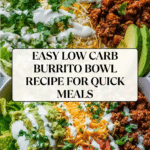 This Easy Low Carb Burrito Bowl is a flavorful and satisfying meal perfect for those following a low-carb lifestyle. Featuring seasoned ground chicken or your choice of protein, fresh cauliflower rice, crisp romaine, and vibrant toppings like avocado, salsa, and cheese, this bowl delivers vibrant Tex-Mex flavors without the extra carbs of a traditional burrito. It’s quick and simple to prepare, making it a great option for a healthy weeknight dinner or meal prep.