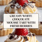 This Elegant White Chocolate Mousse Tart combines a tender, spiced buttery crust with a silky, rich white chocolate mousse filling. Finished with fresh berries, white chocolate curls, and mint leaves, it’s a stunning dessert perfect for special occasions or impressing guests.