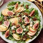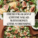 A refreshing and vibrant Fig & Goat Cheese Salad featuring a tangy citrus dressing, fresh baby greens, sweet figs, crisp honeycrisp apple, creamy goat cheese, and crunchy candied pecans. Perfect as a light lunch or elegant starter.