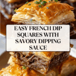 French Dip Squares are a delicious and easy-to-make savory casserole featuring layers of crescent roll dough, deli roast beef, and melted Swiss cheese, topped with a flavorful onion soup butter glaze. Baked to golden perfection and served with warm beef broth for dipping, this recipe offers a delightful twist on the classic French dip sandwich, perfect for gatherings or a hearty snack.