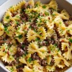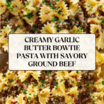 Keywords: Garlic Butter Bowtie Pasta, Ground Beef Pasta, Easy Pasta Recipe, Weeknight Dinner, Comfort Food