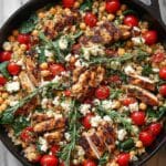 Keywords: Greek chicken, lemon rice, feta cheese, Mediterranean recipe, stovetop chicken, healthy chicken dish, chickpea rice, spinach recipe