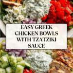 Keywords: Greek chicken bowls, air fryer chicken, tzatziki sauce, Mediterranean recipe, healthy chicken bowls, quinoa bowl, easy dinner
