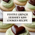 Celebrate the holiday season with these festive Grinch Hershey Kiss Cookies. Soft, buttery sugar cookie dough is filled with a chocolate center and topped with a cute heart-shaped candy, making them perfect for parties and gift-giving.