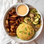 This Hibachi Chicken recipe combines tender, flavorful chicken thighs cooked in a savory glaze with stir-fried vegetables and classic hibachi-style fried rice. Accompanied by a creamy and spicy Yum Yum Sauce, this dish delivers the authentic taste of Japanese hibachi cooking done right at home. The recipe walks you through making the signature sauce, perfectly cooked chicken, vibrant vegetables, and the beloved fried rice that makes hibachi meals so memorable.